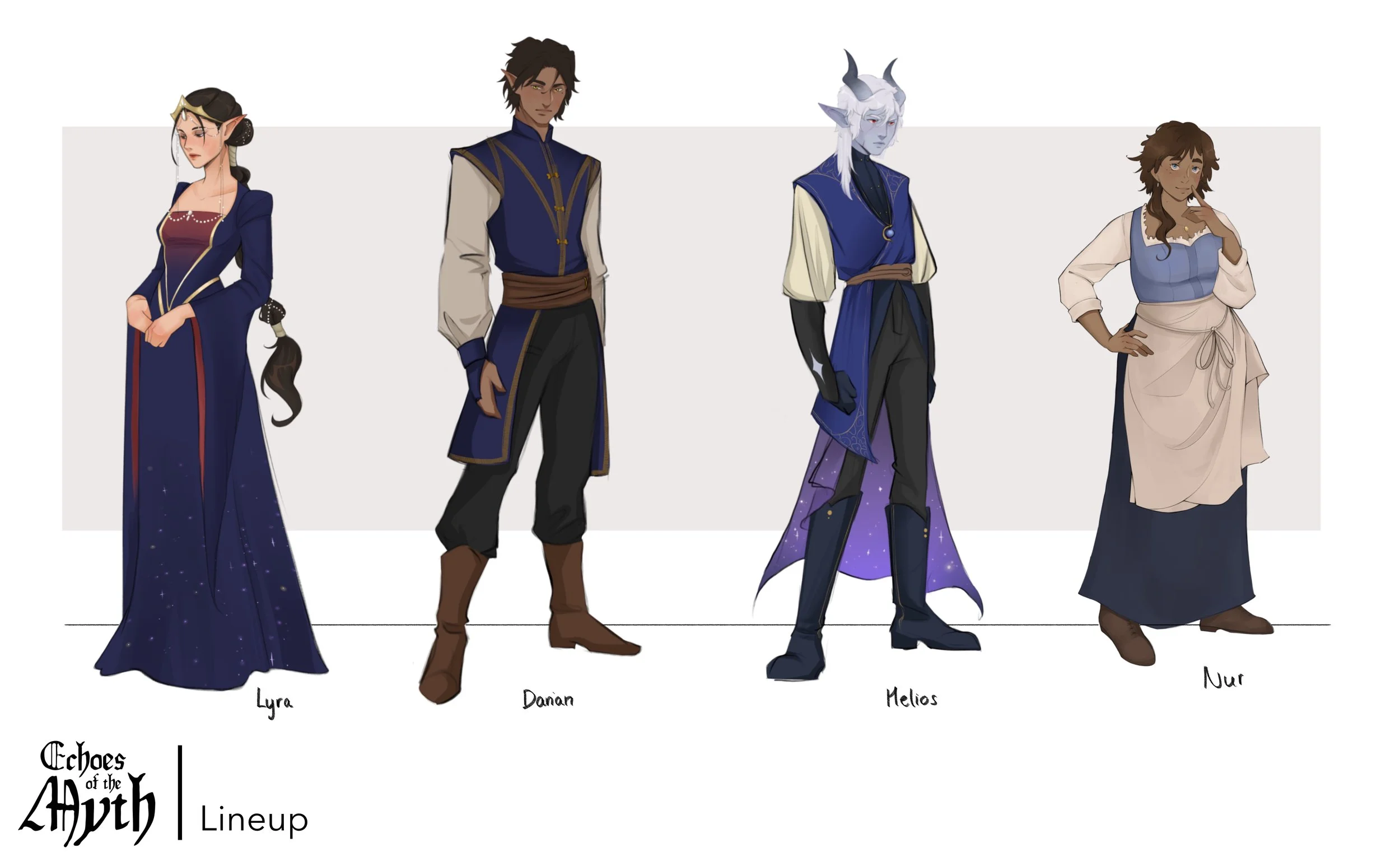 Echoes of the Myth is an interactive visual novel where you get to discover the secrets behind the Royal family and the Godly gem that grants them power.